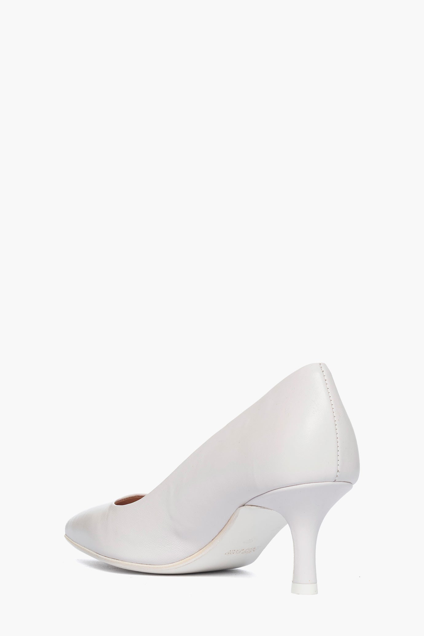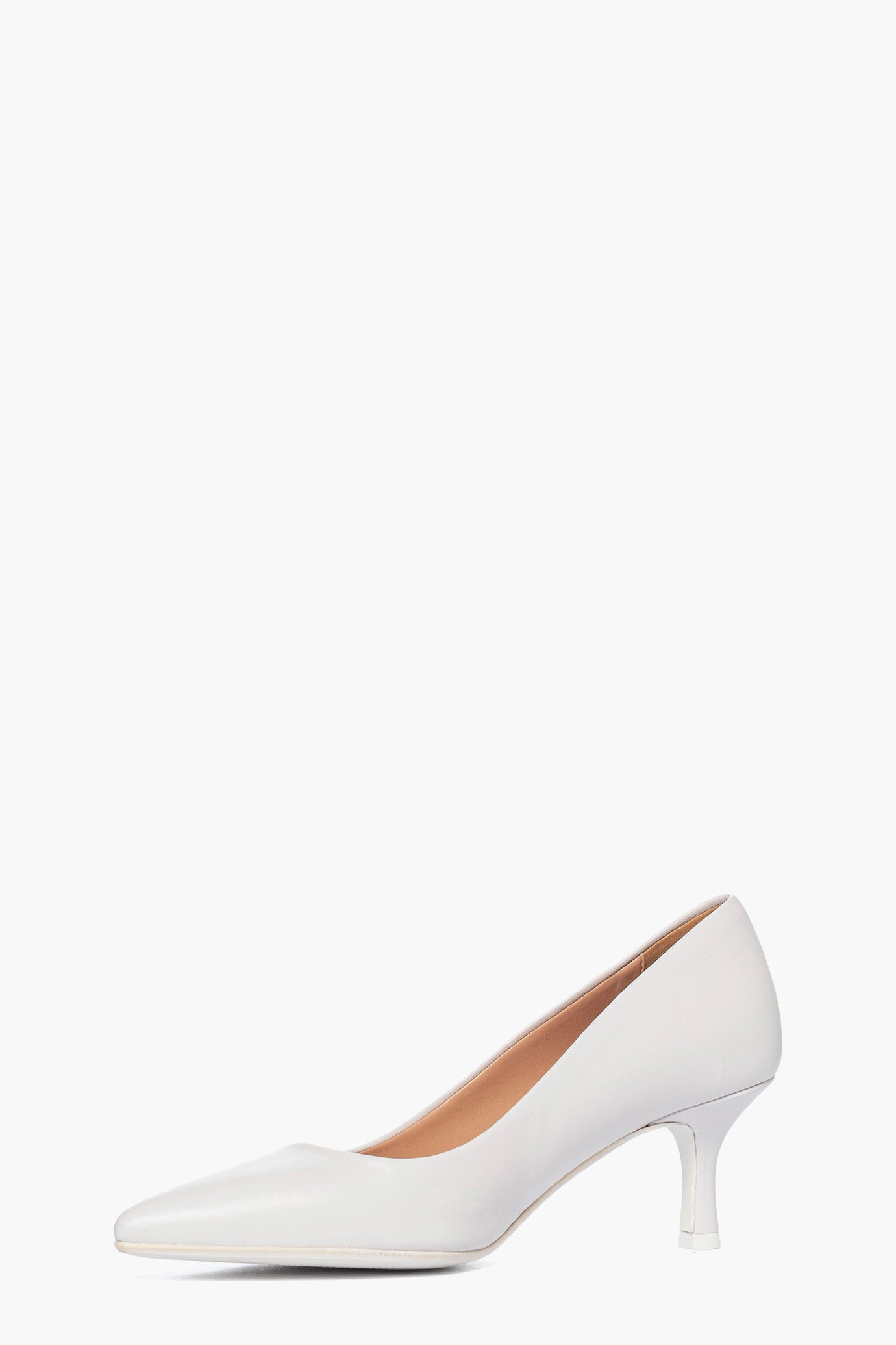 Décolletté in pelle bianco ,con tacco rivestito, altezza 6, interni in similpelle, punta stretta, calzano regolari, suola bianca in cuoio. Calzature artigianali, made in Italy.