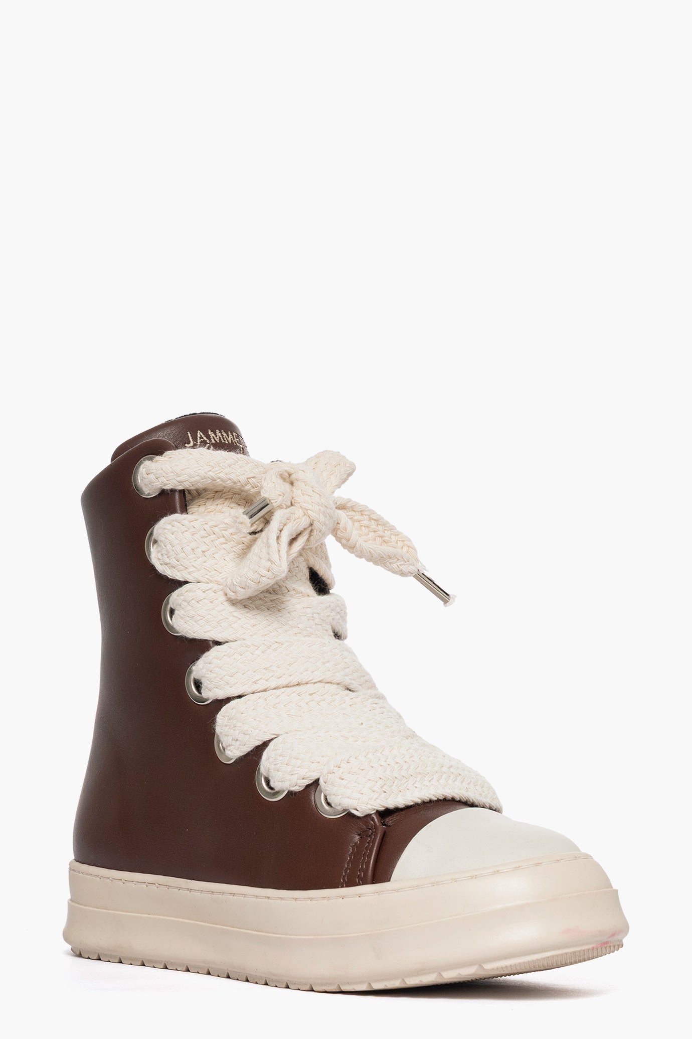 Sneakers in pelle testa di moro, con occhielli in argento, punta in gommato beige, suola in gomma beige, altezza 3, laccio doppio beige, interni in spugna marrone. Calzano comodi, realizzati in modo artigianale, made in Italy.