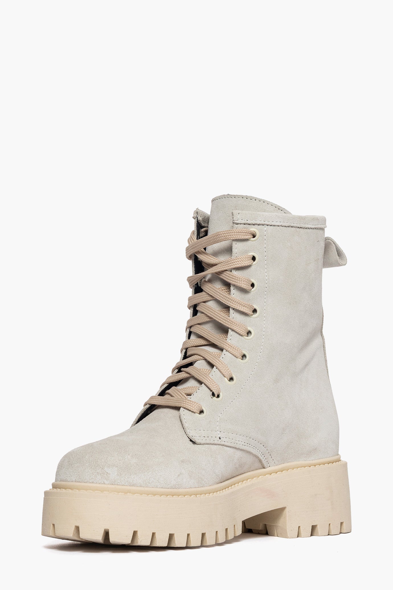 Stivaletti con lacci in pelle testa di moro, interni in similpelle, suola in gomma beige, altezza 5. Calzature artigianali, made in Italy.