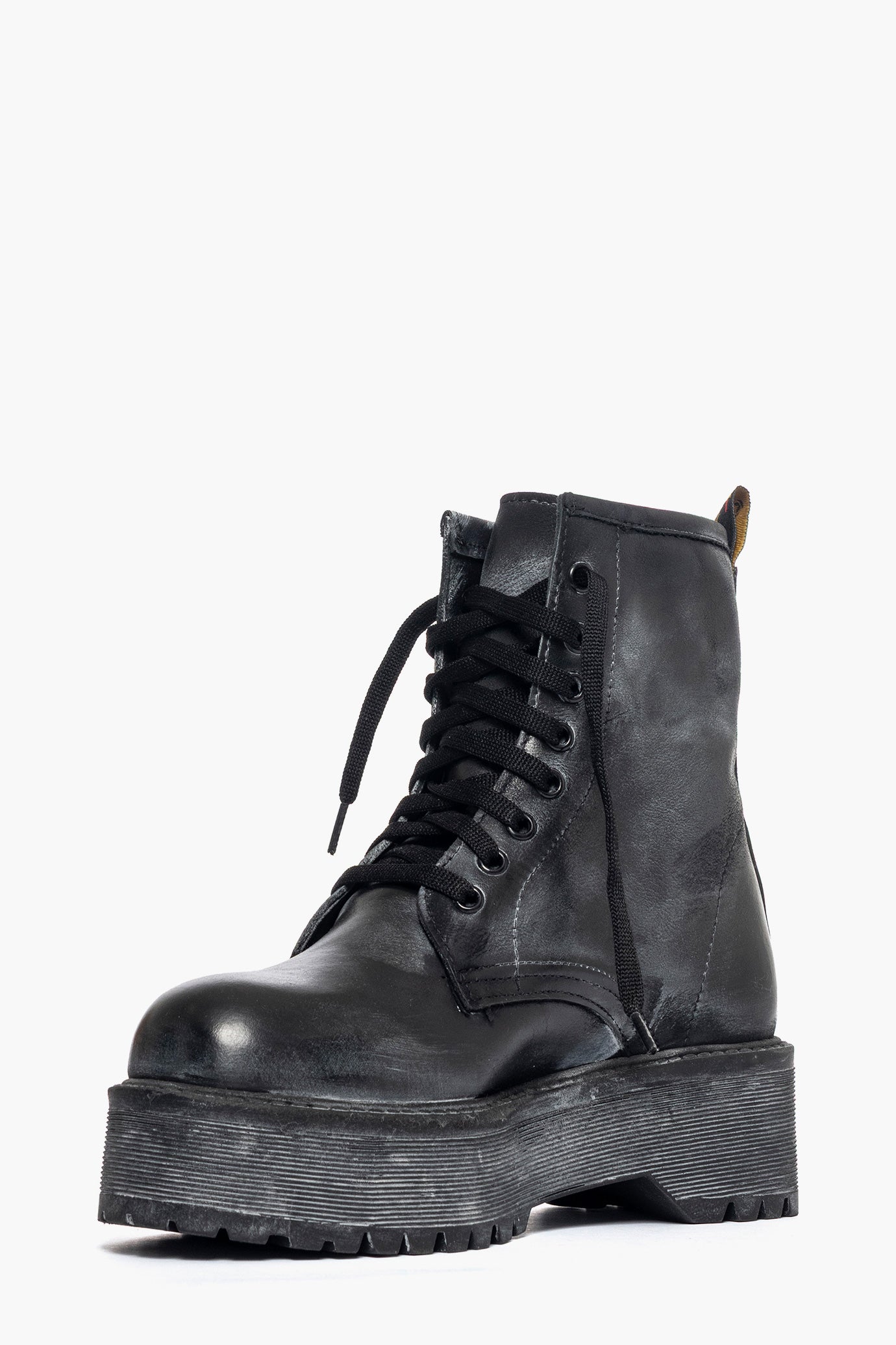 Ankle boots in black brushed white nubuck, with black laces and eyelets, very particular due to the black rubber on the sole, excellent for those who love total black, height 4, imitation leather insole, unlined. Handcrafted footwear, strictly made in Italy. LIA DIVA rubberized label.