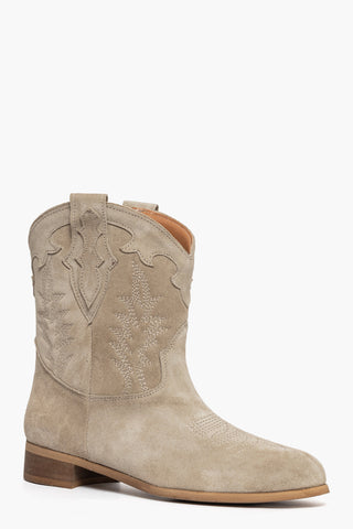Stivaletti con risvolto alla caviglia camoscio taupè fibbia oro 1720