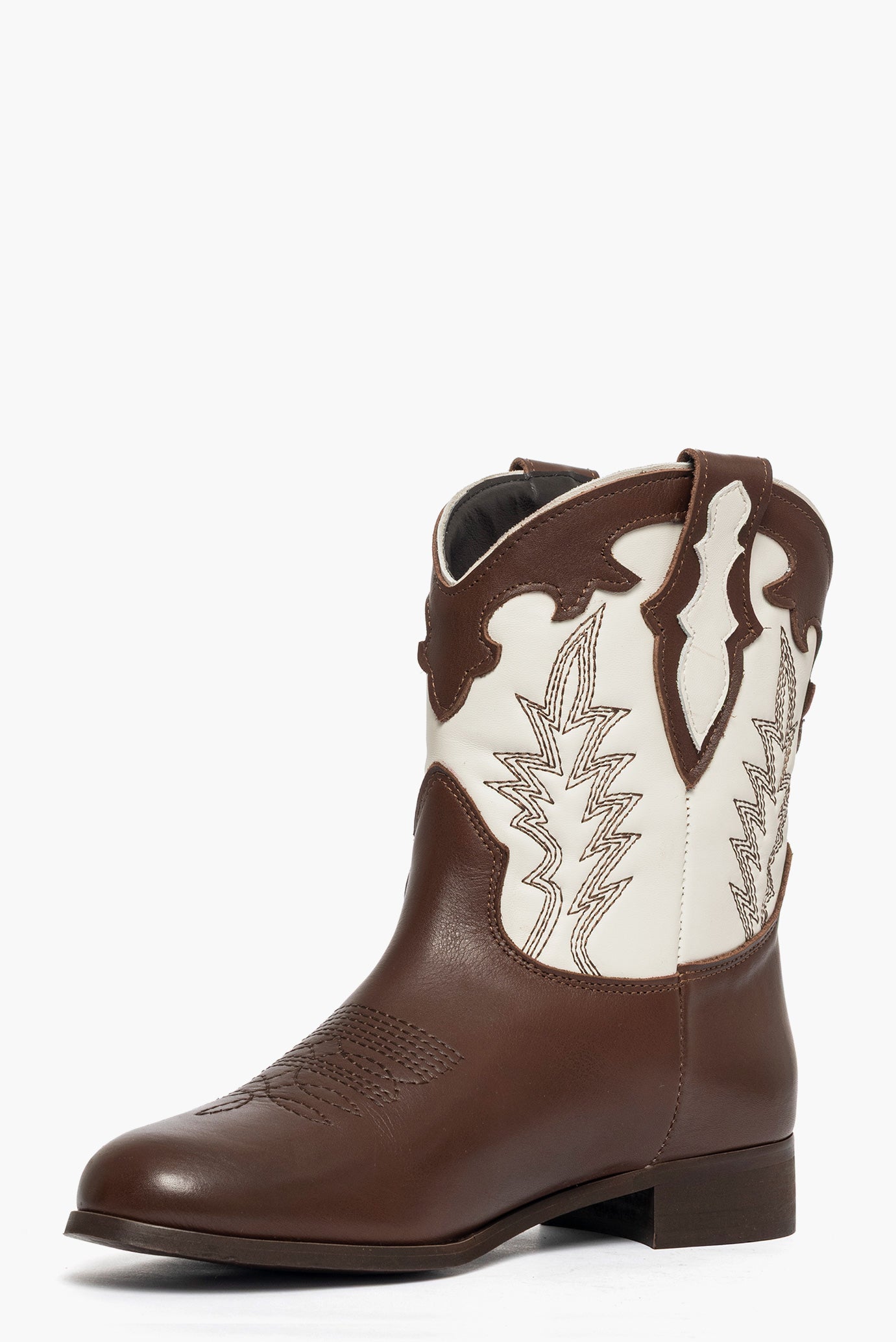 Stivaletti pelle marrone e pelle beige con ricami 298