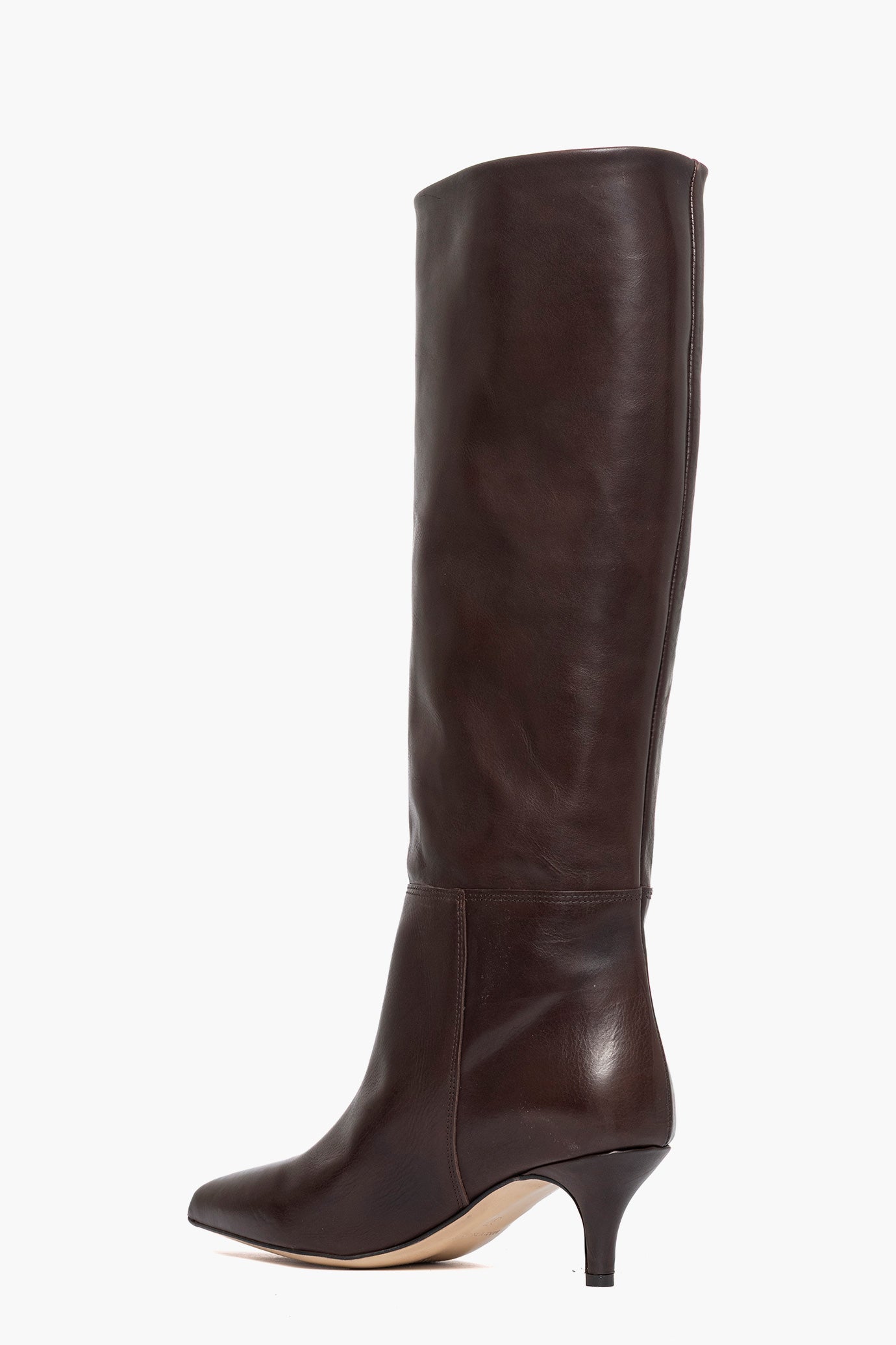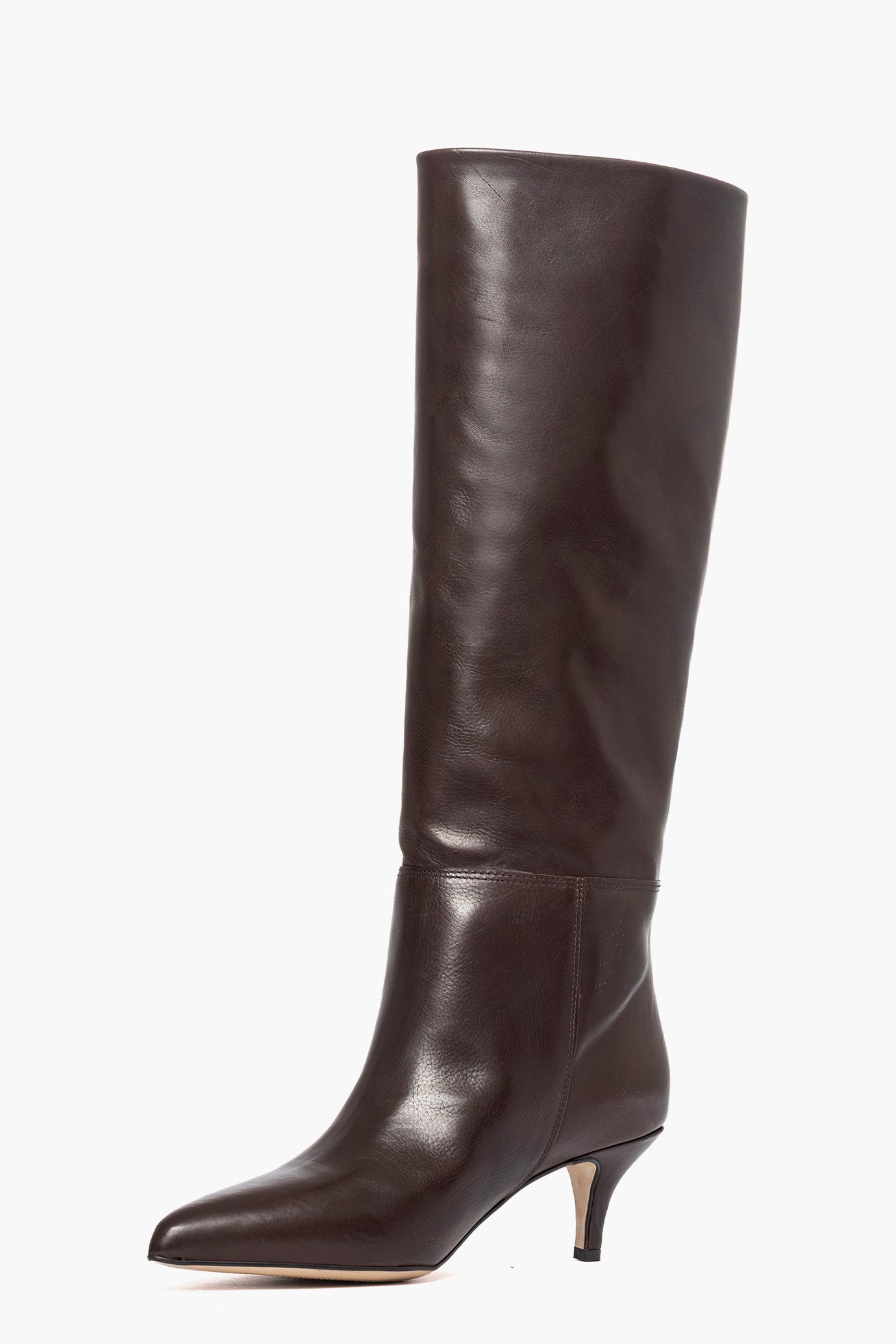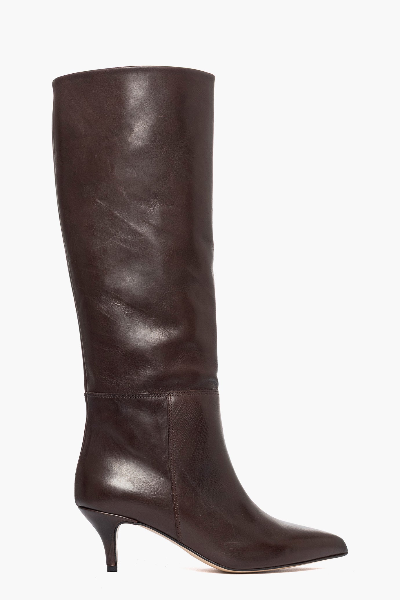 Stivali in pelle testa di moro, interni in similpelle, tacco rivestito, 6cm, privo di cerniera. Calzano regolari, punta stretta. Calzature artigianali, made in Italy.