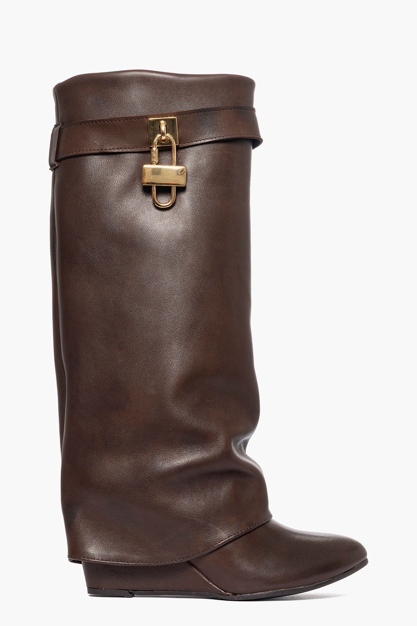 Stivali pelle testa di moro con risvolto e accessorio oro Cinzia 10